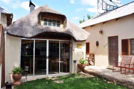 Rietpoort Game and Guest Farm offers guests an option of bed-only, bed & breakfast or dinner, bed & breakfast accommodation near Trompsburg, Free State. Situated 11km from Trompsburg which is on the N1 to Cape Town. Rietpoort is a merino sheep farm where the sheep are sheared ones a year and people can have a look. The sheep have little lambs every 5 months and the children can sometimes feed the ones without mothers. Its also a game farm and springbuck, blesbuck, swart wildebeest and gemsbuck can be viewed. There are also tame springbuck in garden. Rietpoort has a beautiful garden with big trees and the cottages are in the garden. You are invited to sleep in one of our luxury fully equipped garden cottages with air conditioner, electric blankets, DStv TV, kitchenette, fridge, safe parking and braai. Relax at pool or enjoy a game of tennis. Our delicious dinner of Karoo lamb is served on early request in the lapa.